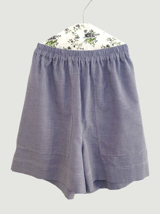 WIDE BERMUDA SHORTS / REFINED BLUE CHECK / WOMEN