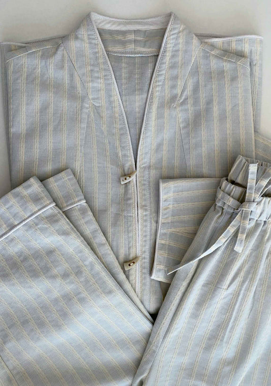 STRIBBED DOBBY PYJAMAS SET // CREAM / LT. BLUE