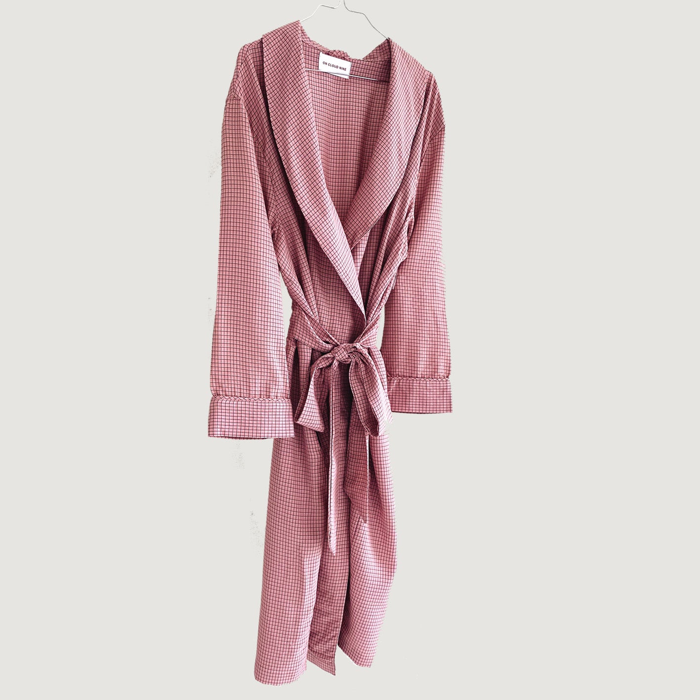 Soft and light weight robe in feminine dark red checkered pattern,