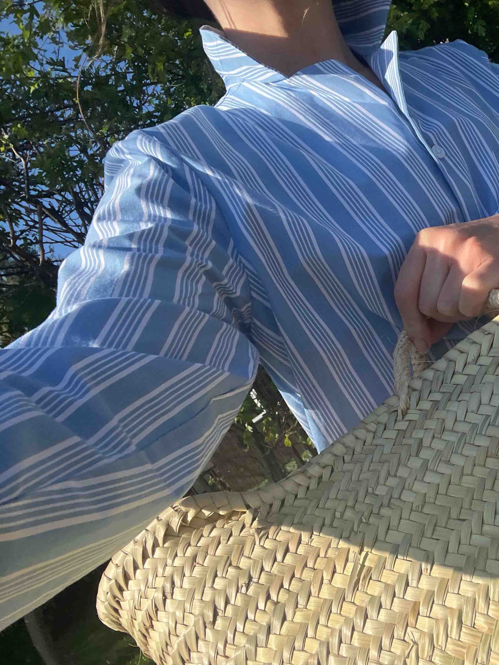 Soft and crisp exclusive cotton poplin in french stripes and contrast piping.