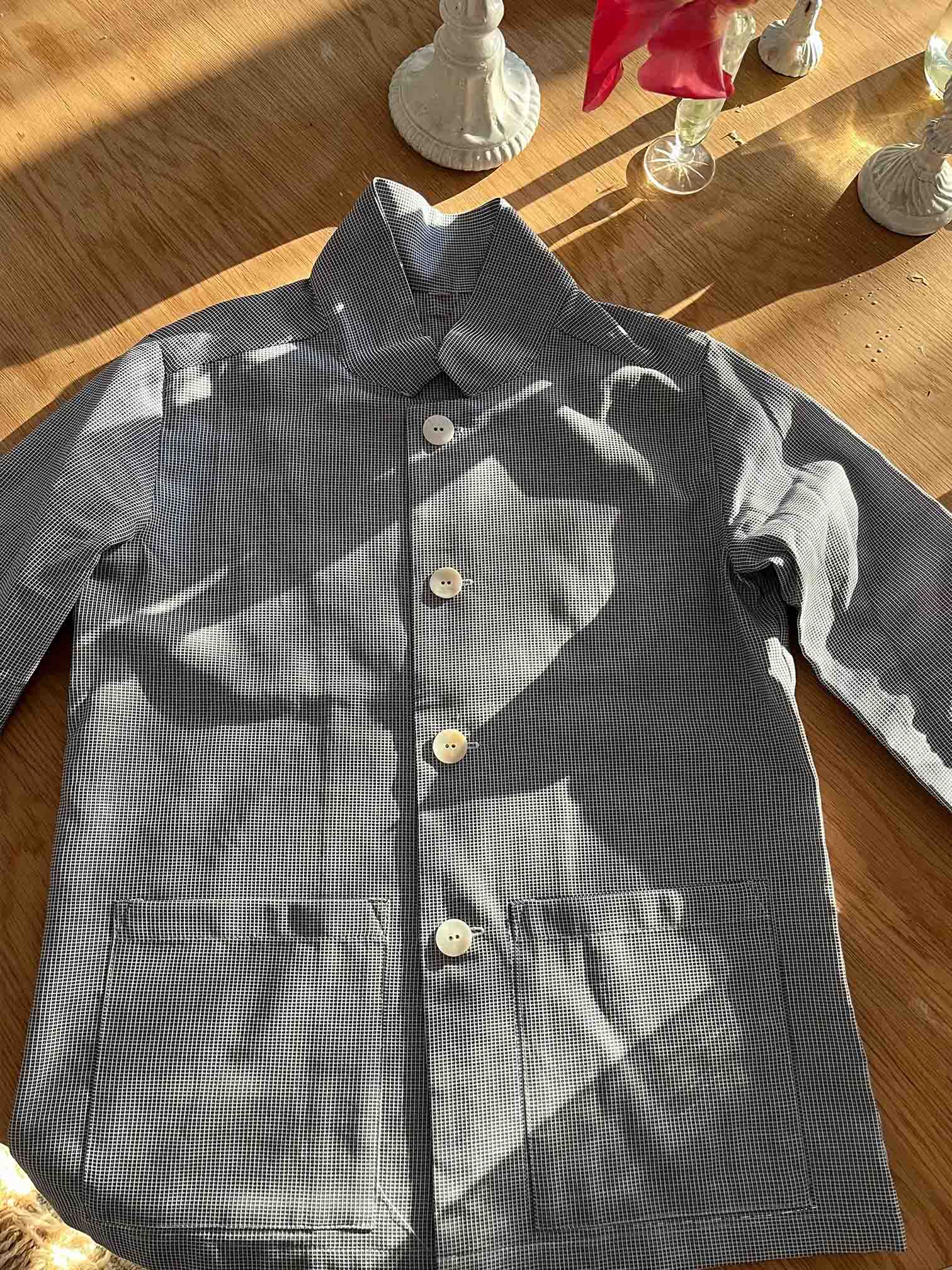 Light, short and well-fitted shirt jacket.