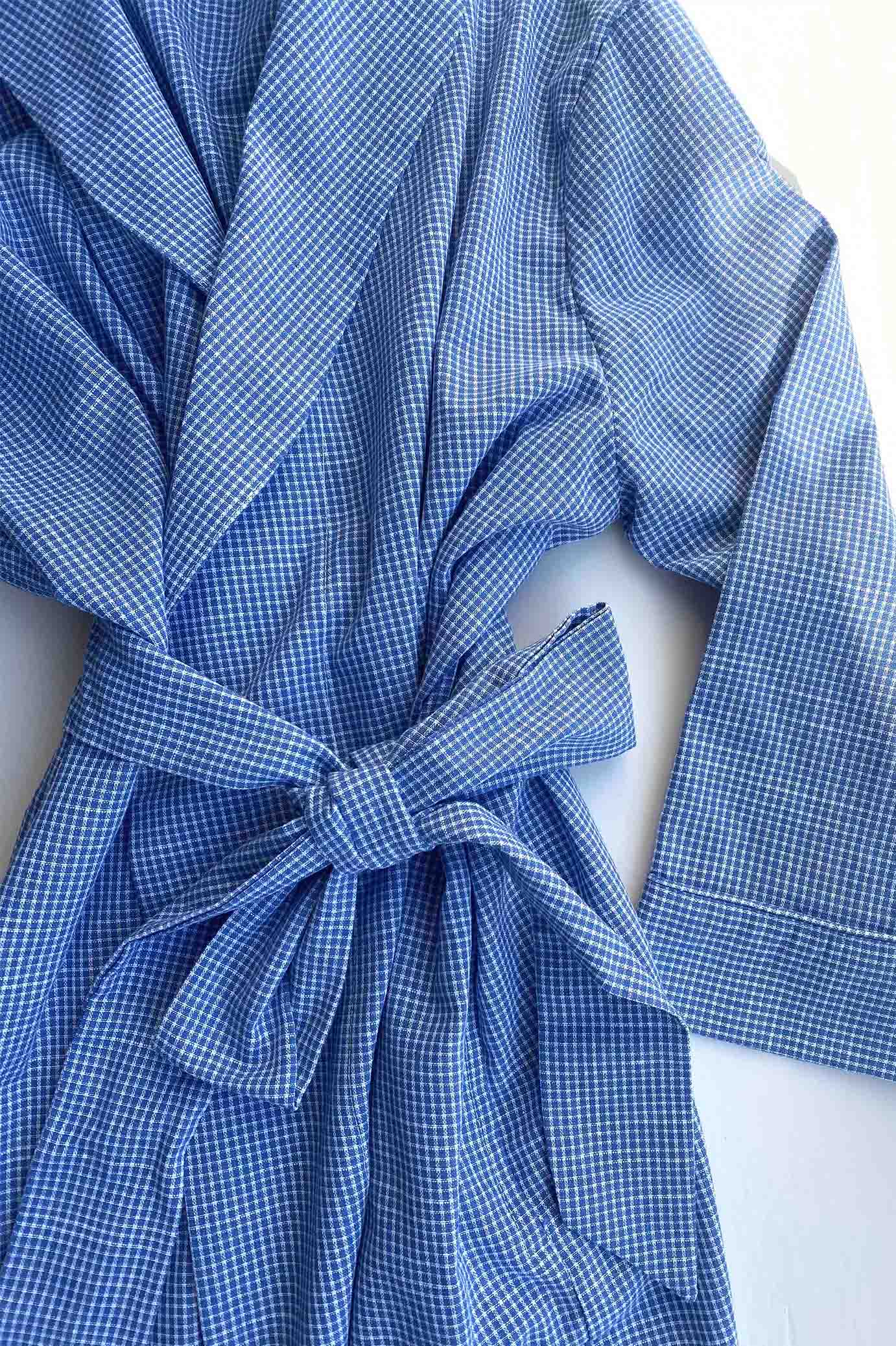 LIGHT ROBE // BLUE & WHITE CHECK // 100% COTTON