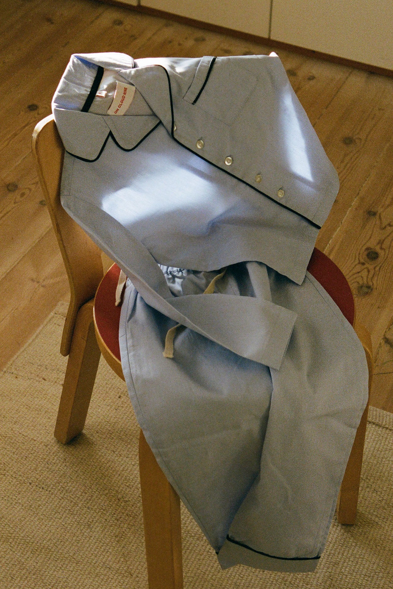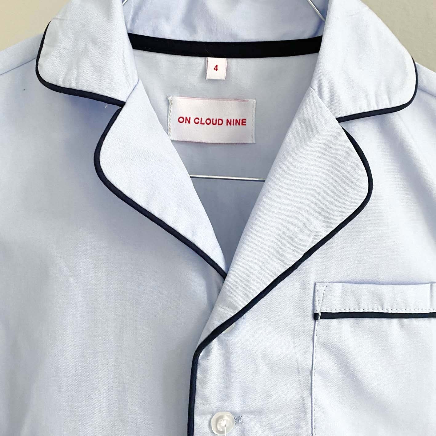 Classic pyjamas set with shirt and pants in super soft and crisp, exclusive cotton poplin in classic blue. Pants have side pockets, high elastic waistband and tie string in the waist. The shirt comes with softly rounded corners finished with a contrasting dark blue piping detail. The fit is loose to ensure the most comfortable sleep. The Mel pyjamas set is perfect to lounge or sleep in.